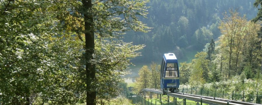In order to provide the ski jumpers a comfortable ascent to the jump area, a modern, fully-automatic ‘Twinliner’-type funicular has been erected. In addition to this, the funicular is also used for transporting all materials for the jumpers and the restaurant.
